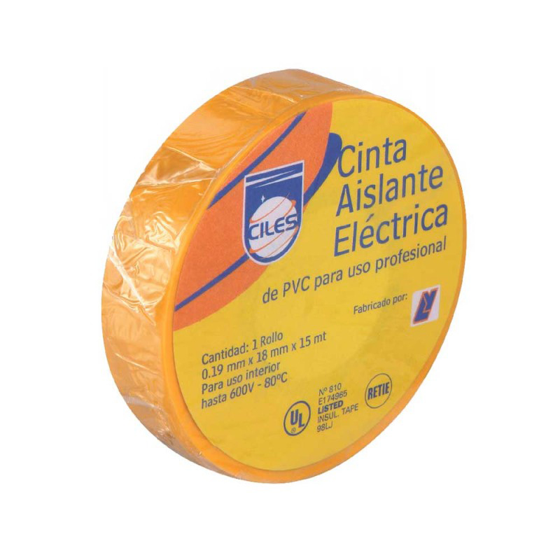 Cinta aislante eléctrica de PVC para uso profesional en trabajos de baja tensión y en interior. Soporta hasta 600V a 80°C. Medidas: 0,18mm x 18mm x 15 mts. Cumple RETIE. Color blanco. Referencia 842307Y de Ciles.