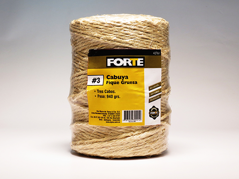 Fique (fibra natural) Biodegradable 100% natural, color natural, resistencia minima 50 kgf , 300 metros, peso 940 gms. Utilizado en las artesanias, hogar y sector agropecuario. No hay un grado de toxicidad conocido por el uso de este producto, recomendamos la vigilancia cuando este sea utilzado por niños.