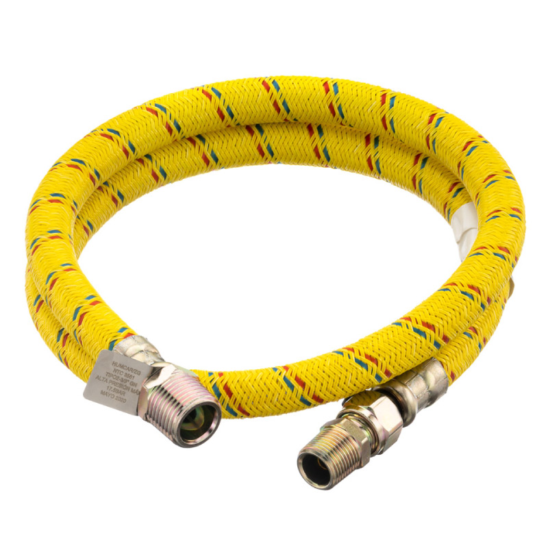 Conectores para Gas Natural y GLP para la facil instalación de los Gasodomesticos como: estufas, calentadores, etc. Manguera con recubrimiento tipo trenzado en pvc autoextinguible. Certificada bajo la NTC 3563