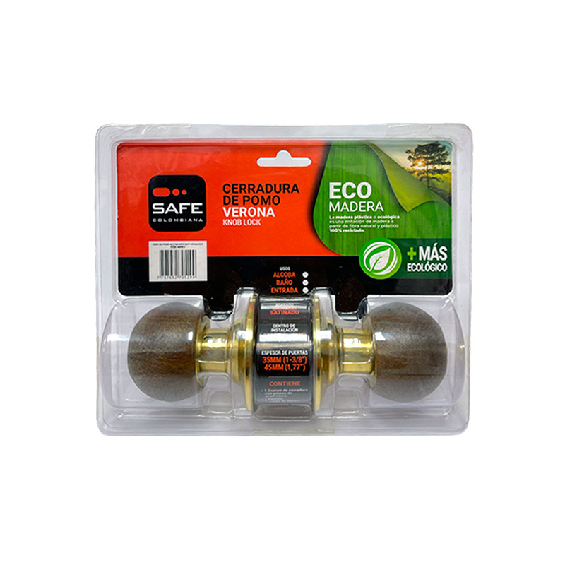 Cerradura Cilíndrica con Pomo de Madera ecologica, esta cerradura cilíndrica está diseñada para alcobas, baños y entrada, combinando la calidez del pomo de madera con la Piezas externas fabricadas en aluminio y acero inoxidable con cuerpo interior en lámina cold rolled. Cuenta con un cilindro de latón (alcoba, entrada) para mayor seguridad y durabilidad. Su centro de instalación de 60mm (2-3/8") y roseta de 65mm permiten una fácil adaptación a puertas con un espesor de 35 a 50mm. Incluye 2 llaves de acero con acabado niquelado.