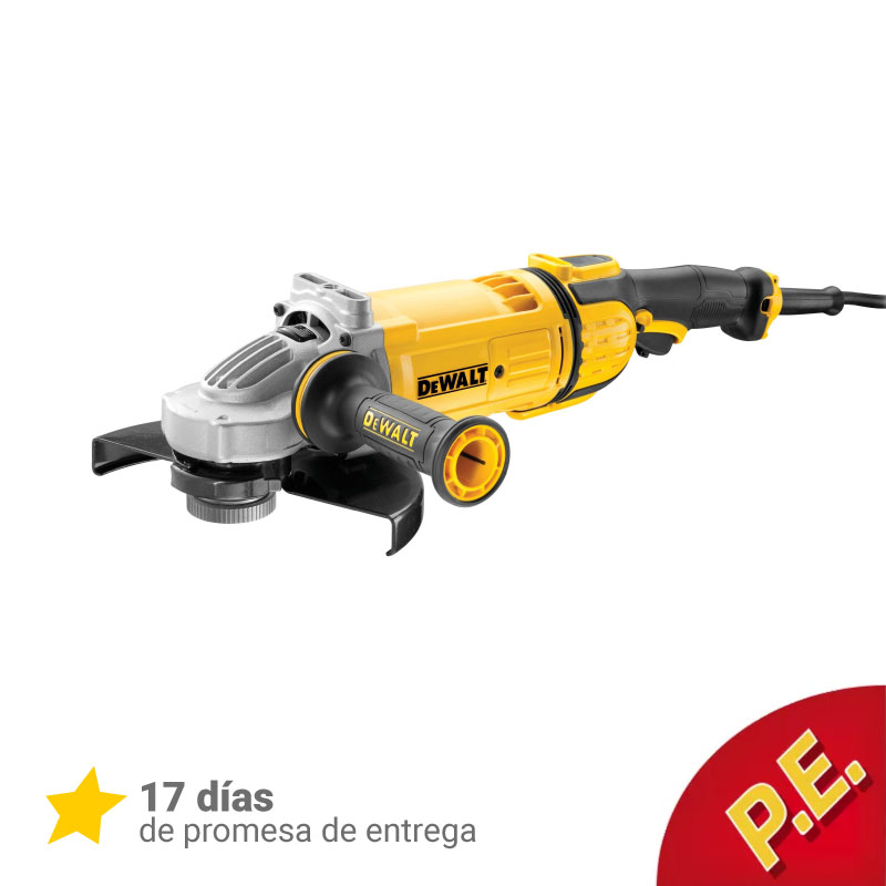 Pulidora Industrial 9pg DWE4579 Potencia 2.700 W; Velocidad 6.500 rpm; Bloqueo del eje Sí; Eje 5/8pg Motor de 5,5 HP de gran potencia con protección a sobrecarga; Cobertura de epoxi en el motor, protege contra abrasiones del material desbastado y maximiza la vida de la herramienta; Mango lateral de 5 posiciones, minimiza fatiga en cada aplicación; Guarda ajustable sin llave; Engranajes helicoidales de acero forjado que aseguran una operación silenciosa y suave con mínima vibración, menor ruido y mayor durabilidad
