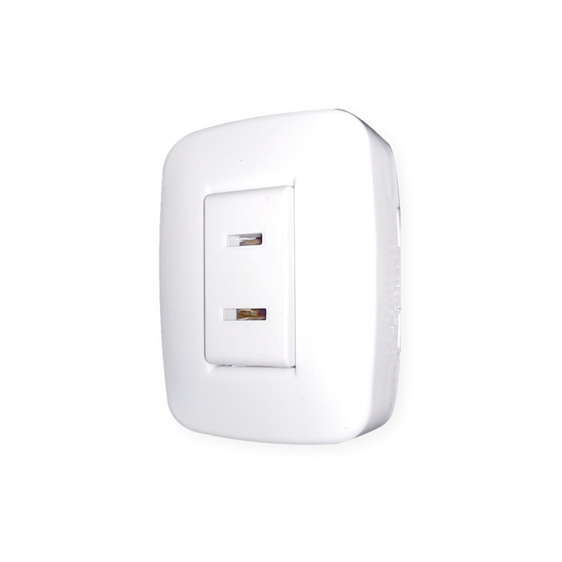 Toma sencilla de sobreponer, ideal para aplicaciones comerciales, residenciales, oficinas entre otras. Voltaje 125V. Capacidad: 15A. Color: Blanco