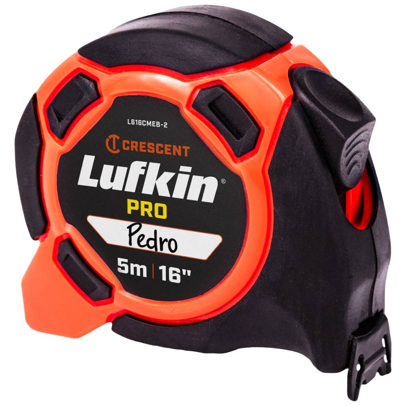 Cinta elaborada en acero templado de alta calidad con revestimiento epóxico de color amarillo anti reflejante, con escalas (sistema métrico decimal y en pulgadas) en color negro y rojo para fácil identificación y lectura. Gancho elaborado en acero de alta calidad en el extremo para asegurar medidas precisas. Carcasa de plástico ABS recubierto con caucho moldeado siendo resistente al impacto, anatómico, cómodo y manejable. Freno y botón pisador elaborados en Nylon Ultramatic, que mantienen la cinta sujetada.