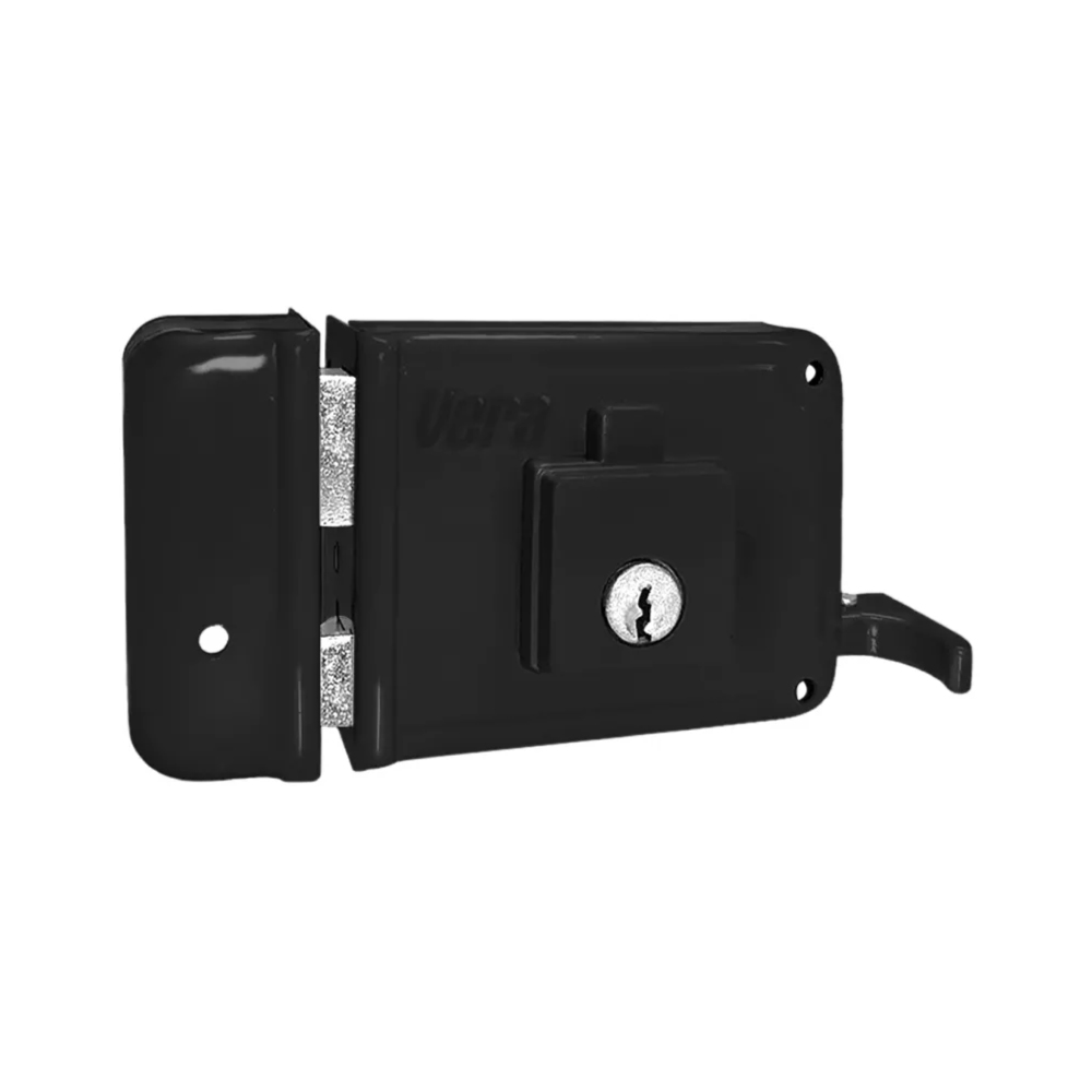 Cerradura de sobreponer para puerta principal, disponible para apertura del lado izquierdo. Instalación en cuerpos de madera o laminados metálicos. Macho en zamak que se acciona totalmente con tres giros de la llave y bloqueo del picaporte en la posición final del macho. Permite instalación con soldadura en puertas metálicas. Centro de instalación estándar a 50 mm. Cilindro de 5 pines. Para Determinar el Lado de la Puerta, Deberás Pararte Frente al Exterior. Si las Bisagras Están en el Lado Derecho, La Puerta es Derecha y si las Bisagras Están Instaladas del Lado izquierdo, La Puerta es Izquierda.