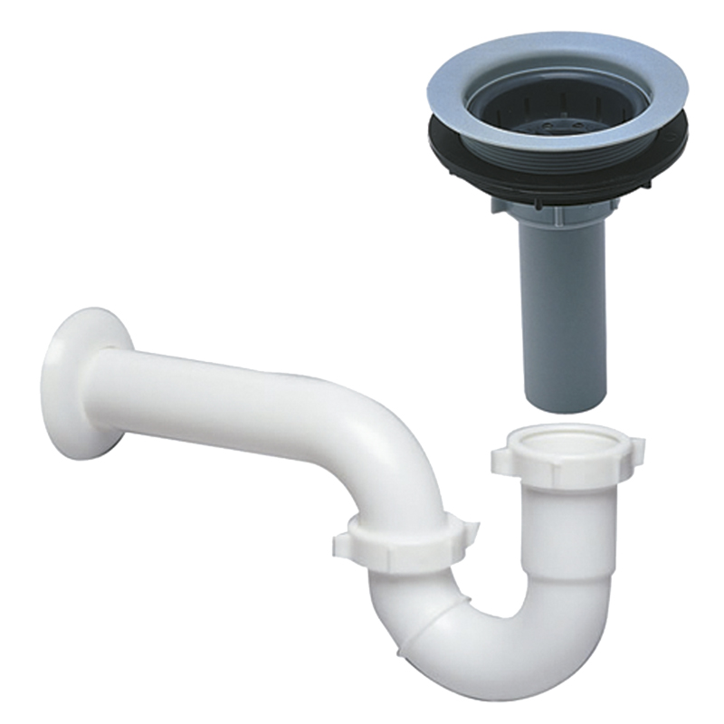 Griferia para desague del lavaplatos. Accesorio tipo P fabricado en Polpropileno, resistente al calor, resistencia mecanica, no absorve humedad, Canastilla y aro plasticos