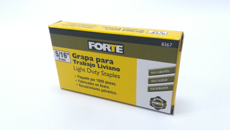 Ideal para trabajos livianos en el hogar y manualidades fabricada en acero alta resistencia mecánica recubrimiento galvánico para la corrosión utilizada en marquetería, ebanistería, tapicería, carpintería, papelería y publicidad. Medida de 5/16" (8 mm). Caja x 1.000 unidades