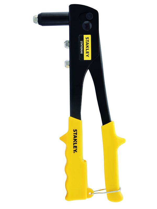Remachadora de construcción durable en Acero. El mango es accionado por resortes que expulsa el vástago del remache. Incluye 3 boquillas y una llave guardada en el mango. Remaches: 1/8, 5/32, y 3/16